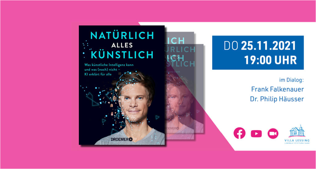 Wie funktioniert KI? Dr. Philip Häusser, promovierter Physiker, Start-up-Gründer und Wissenschaftsjournalist wird im Gespräch mit Frank Falkeneuer erklären, was künstliche Intelligenz kann und was sie von „echter“ Intelligenz unterscheidet. Er wird aufzeigen, wie selbstfahrende Autos Zebras von Zebrastreifen unterscheiden, warum eine gute KI manchen Arzttermin überflüssig macht und wie sich Computer in Menschen verlieben können.